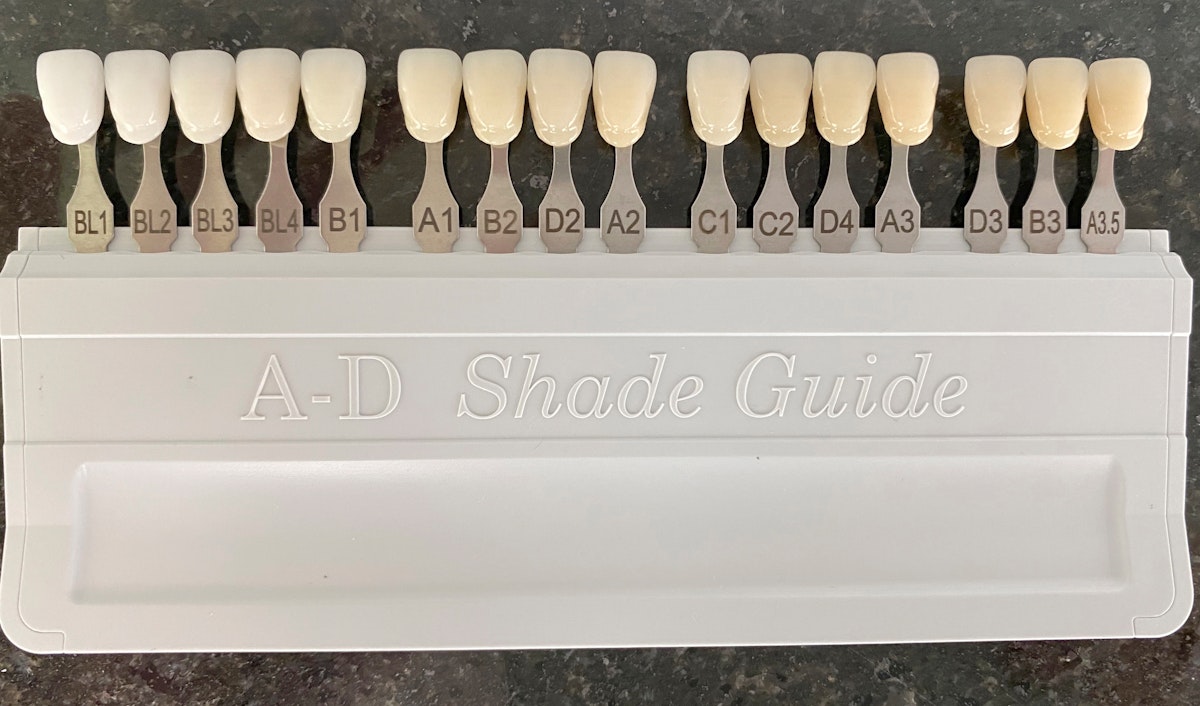 Yllä perinteinen väriskaala jossa vaaleimmat värisävyt ovat korvattu valkaisu- eli BL sävyillä. Tämä skaala on hammaslääkärin näkökulmasta käytännöllisempi, koska valkaisun jälkeistä korjaavaa hoitoa varten värisävy on selvillä ja lopputuloksen perusteella on helppo valita esimerkiksi etuhampaiden paikkaamisessa käytettävän yhdistelmämuovitäytteen väri.